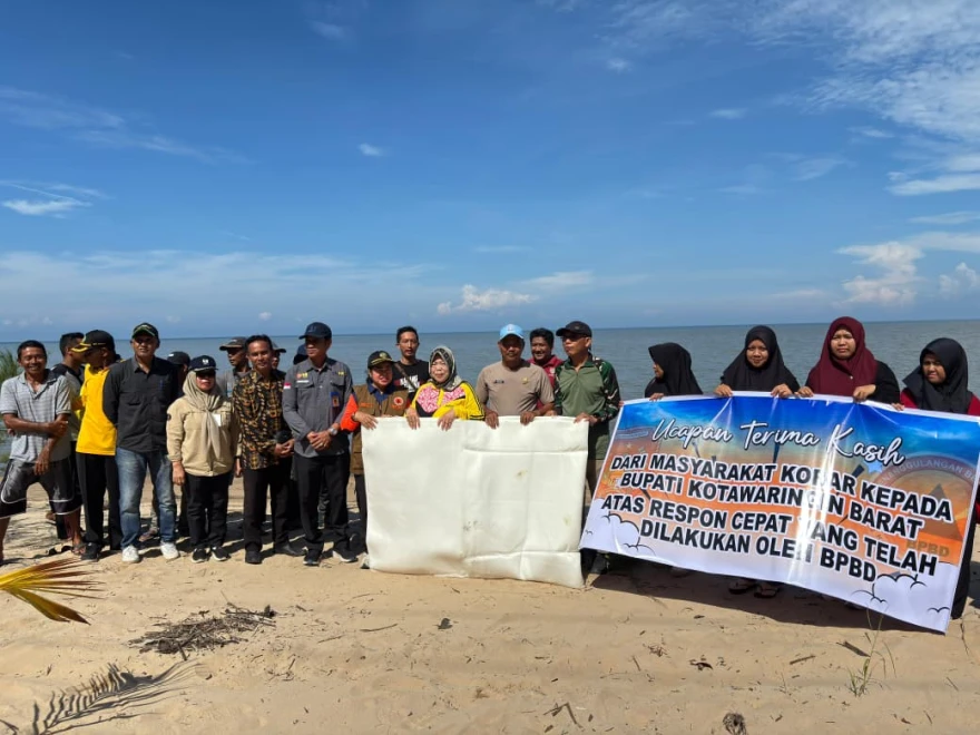 *Bupati Kotawaringin Barat Salurkan Bantuan Geobag, Perkuat Mitigasi Abrasi Pantai Desa Keraya**